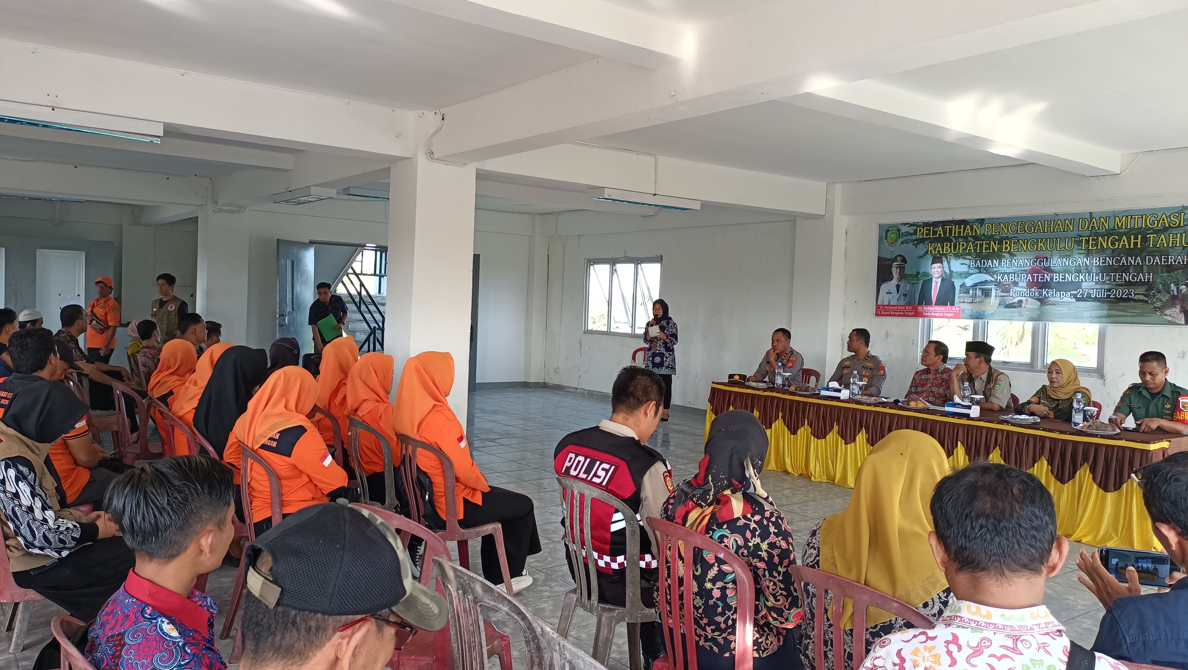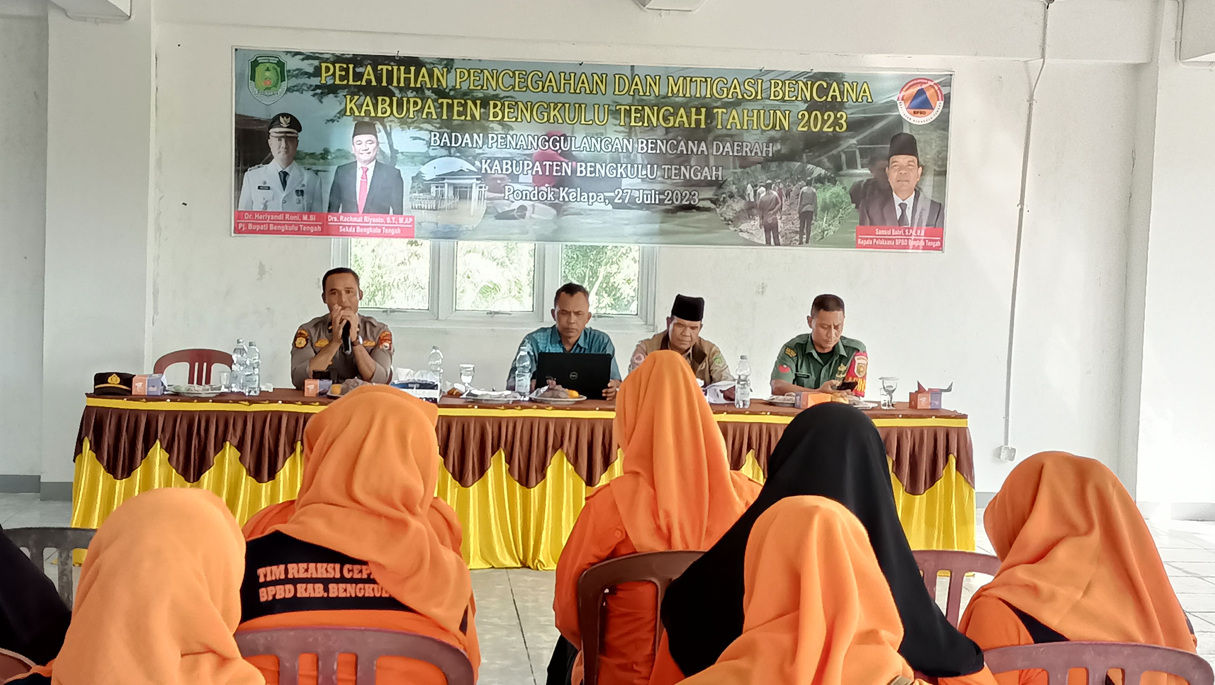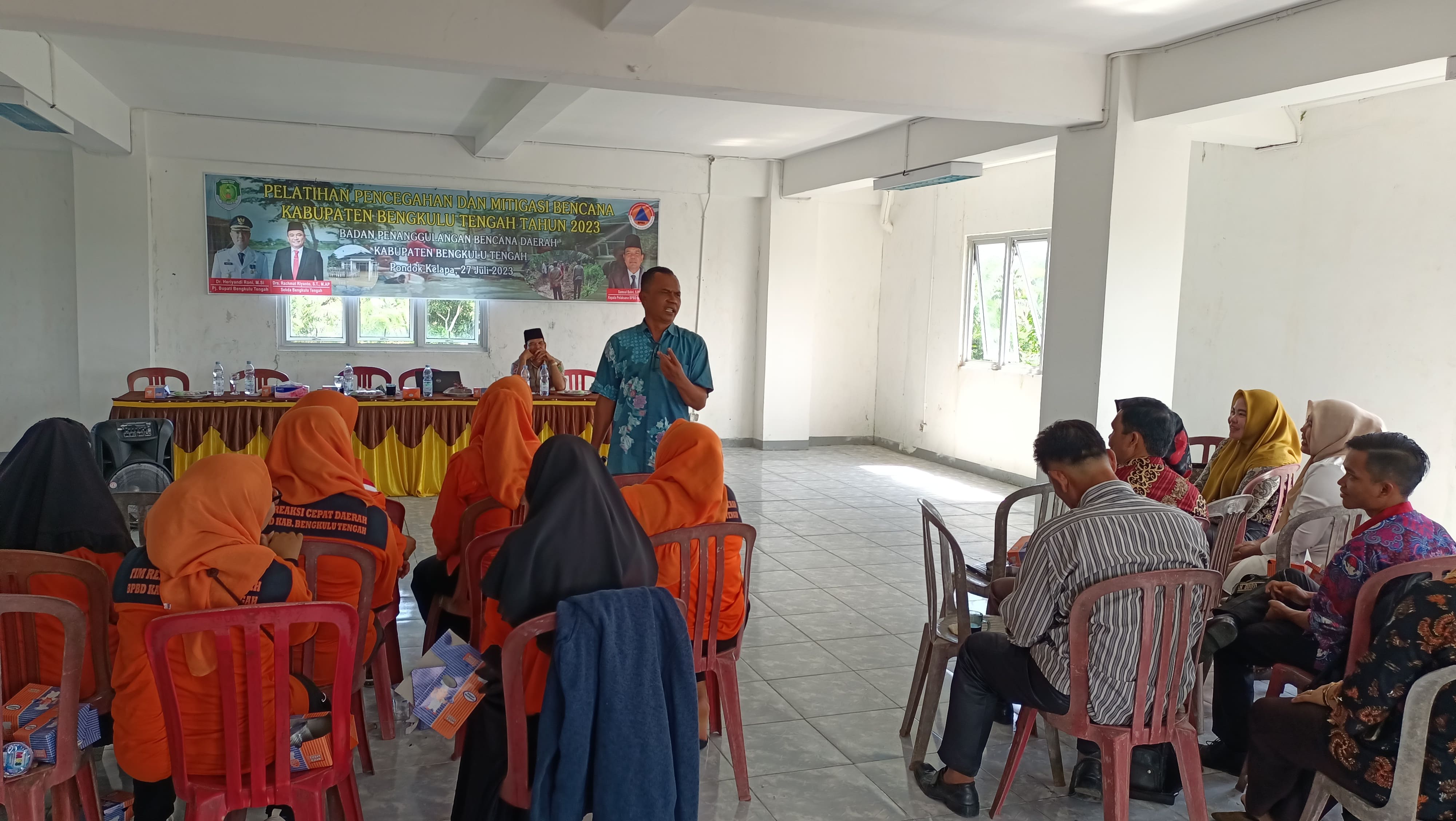 Bengkulu Tengah - Dalam rangka peningkatan pencegahan dan kesiapsiagaan menghadapi bencana di Kabupaten Bengkulu Tengah, BPBD Kabupaten Bengkulu Tengah bermaksud mengadakan Kegiatan Pelatihan Pencegahan dan Mitigasi Bencana Kabupaten Bengkulu Tengah Tahun 2023 yang akan diselenggarakan pada hari kamis tanggal 27 Juli 2023 yang bertempat Shelter Desa Pondok Kelapa, Kecamatan Pondok Kelapa. Kegiatan pelatihan tersebut dibuka oleh Staf Ahli Bupati Bidang Pemerintahan, Hukum dan Politik, Zamzami Syafei, S.IP, M.Si sebagai perwakilan Bapak Sekretaris Daerah Kabupaten Bengkulu Tengah. Adapun materi pelatihan dipaparkan oleh Kepala Pelaksana BPBD Kabupaten Bengkulu Tengah, Samsul Bahri, S.Pd, M.M, Agus Widianto, M.A.P dari MDMC Bengkulu, Ipda Rodi Pasah, S.H, M.Si dari Polres Bengkulu Tengah. Tampak hadir pula Wakapolsek Pondok Kelapa, Babinsa Pondok Kelapa, Camat/perwakilannya dari Desa Pondok Kelapa, Desa Sidodadi, Desa Sunda Kelapa, Desa Pagar Dewa, Desa Abu Sakim, Desa Kembang Ayun, dan Desa Padang Betuah, serta ASN dan Satgas BPBD Kabupaten Bengkulu Tengah. Dengan adanya kegiatan pelatihan pencegahan dan mitigasi ini diharapkan pengetahuan dan peningkatan kemampuan peserta dapat meningkat dalam mengatasi ancaman bencana dan bertindak apabila terjadi bencana alam. Serangkaian upaya dalam mitigasi bencana dapat mengurangi risiko bencana yang meliputi korban jiwa, kerusakan lingkungan, kerugian materil serta dampak psikologis. Bentuk mitigasi yang dapat diterapkan dalam kehidupan masyarakat dapat berupa mitigasi berbasis komunitas seperti katana, destana, kencana, SPAB, dan Jamaah Tangguh. Berdasarkan tindakan penanganan dan evakuasi bencana alam secara histori oleh BPBD Kabupaten Bengkulu Tengah, terdapat 6 jenis bencana alam yang menjadi ancaman masyarakat di wilayah Kabupaten Bengkulu Tengah yaitu banjir, tanah longsor,gempa bumi, puting beliung, karhutla dan tsunami.