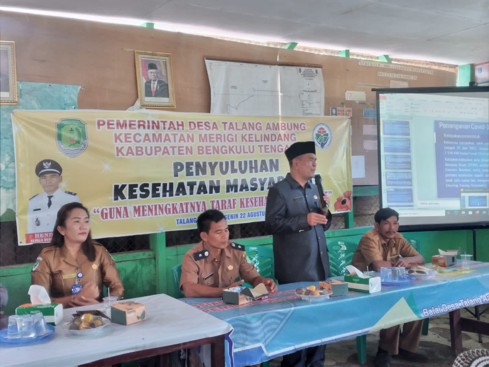 Kepala Pelaksana BPBD Kabupaten Bengkulu Tengah menghadiri undangan dari Pemerintah Desa Talang Ambung, Kec. Merigi Kelindang dalam kegiatan Penyuluhan Kesehatan Masyarakat pada tanggal 22 Agustus 2022 bertempat di Kantor Desa Talang Ambung.