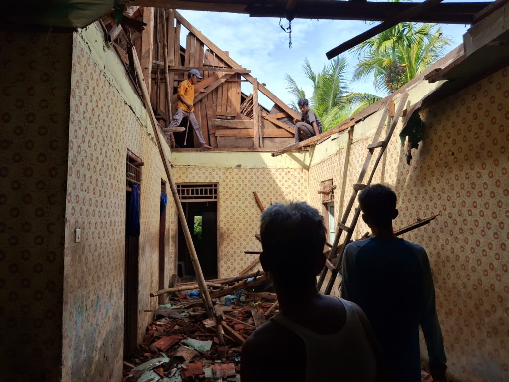 Bengkulu Tengah – Satu rumah warga rusak milik Rakna, dampak dari angin puting beliung yang disertai hujan deras, kejadian pada Rabu (31/12/2025) di Desa Talang Empat Kecamatan Karang Tinggi dan terjadi kondisi rusak bagian atap dengan material genting serta kayu kasau dan reng yang lapuk. Kerugian diperkirakan mencapai ± Rp. 30 juta dan tidak menyebabkan korban jiwa. Adanya kejadian ini Tim BPBD Kabupaten Bengkulu Tengah dipimpin dipimpin Sekretaris, Rachmad Hidayat, S.E. dan Analis Kebencanaan (Kasi Kedaruratan), Jimi Harto, S.Kep.,, segera meninjau lokasi kejadian untuk pendataan dan berkoordinasi ke kepala desa setempat.