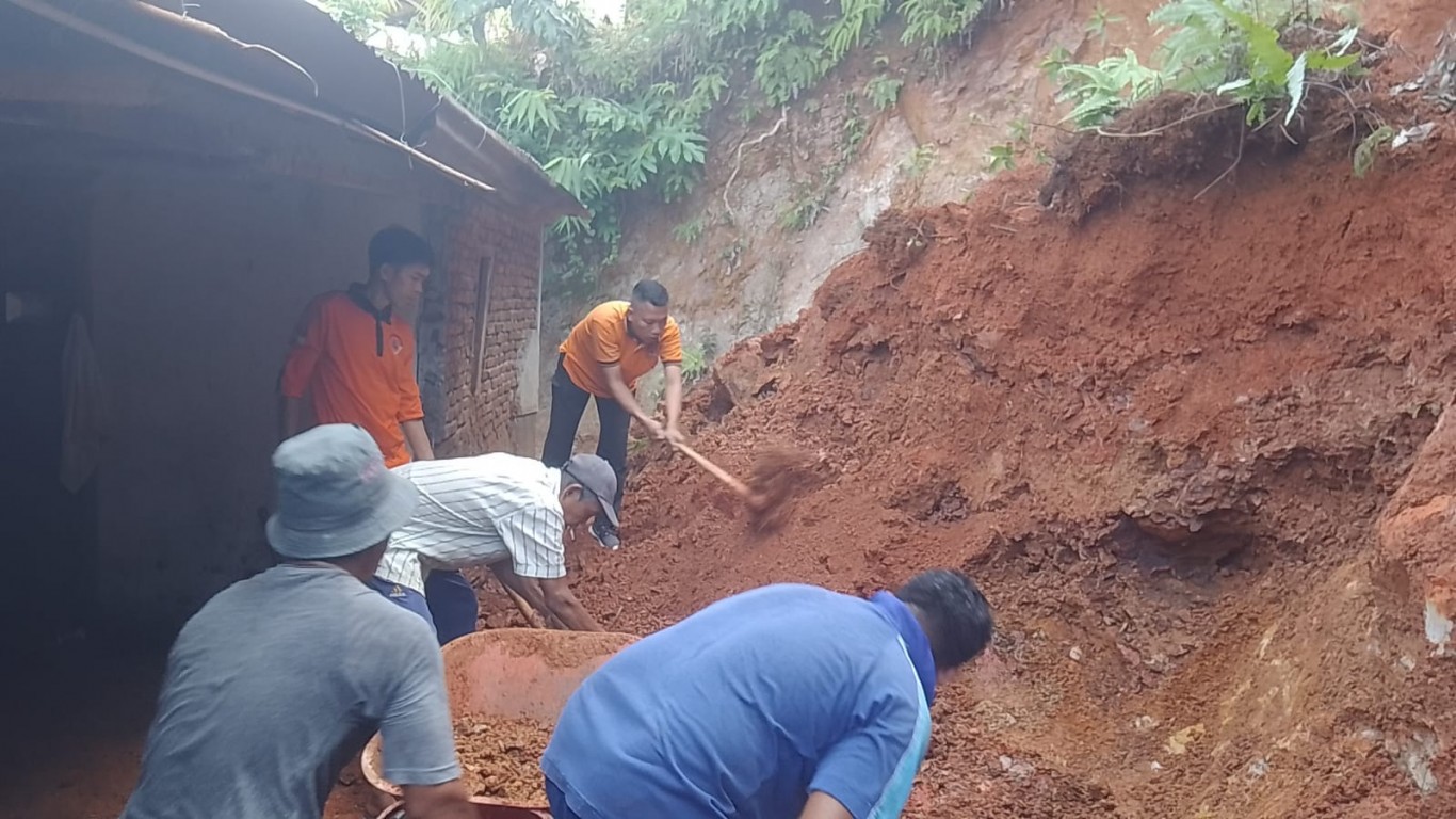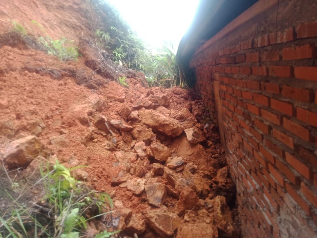 Bengkulu Tengah - Satu rumah warga milik Bapak Aksin (75), kejadian pada tanggal 02 Januari 2024 sekitar 16.00 WIB di Desa Taba Teret Kecamatan Taba Penanjung mengalami dampak kerusakan kejadian tanah longsor akibat hujan lebat di wilayah Kecamatan Taba Penanjung. Dampak kejadian tanah longsor menyebabkan kerusakan dinding dapur, peralatan dapur dan elektronik, diperkirakan kerugian mencapai Rp. 20 juta dan tidak menyebabkan korban jiwa. Tim dari Bidang Darurat dan Logistik BPBD Kabupaten Bengkulu Tengah berkoordinasi ke Kantor Desa Taba Teret untuk langsung melakukan bantuan pembersihan akibat tanah longsor di lokasi kejadian yang dibantu oleh Satgas BPBD, Polsek Taba Penanjung, dan masyarakat setempat (03 Januari 2024). BPBD Kabupaten Bengkulu Tengah melalui Kepala Bidang Darurat dan Logistik, Bapak Andri Edo Saputra, S.Sos., telah memberikan bantuan sembako, terpal, tikar dan family kit kepada korban tanah longsor (05 Januari 2024).