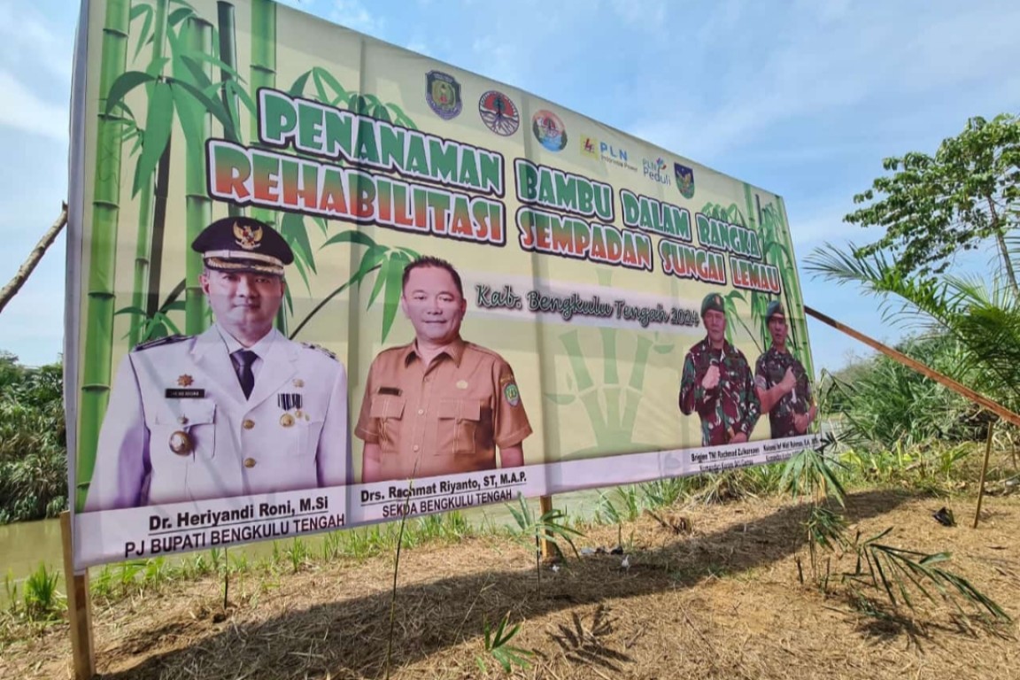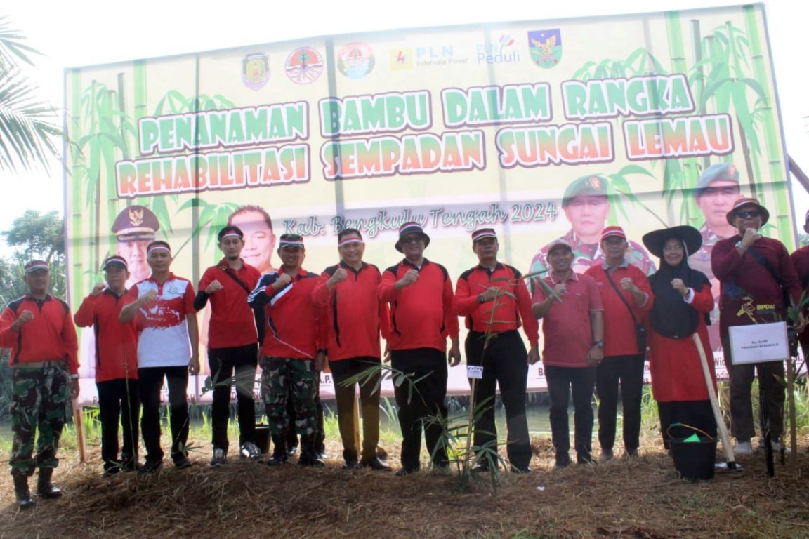 Bengkulu Tengah – BPBD Benteng turut mengikuti rangkaian kegiatan Penanaman Pohon Bambu dalam Rangka Rehabilitasi Sempadan Daerah Aliran Sungai (DAS) Lemau yang dilaksanakan di DAS Lemau Desa Talang Boseng Kecamatan Pondok Kelapa Kabupaten Bengkulu Tengah, Jumat (02/08/2024) dengan menyediakan 2 unit perahu karet disertai operator perahu. Kegiatan ini diselenggarakan Pemerintah Kabupaten Bengkulu Tengah melalui kerjasama dengan TNI, Forkopimda Bengkulu Tengah, Balai Pengelolaan Daerah Aliran Sungai dan Hutan Lindung (BPDASHL) Ketahun Bengkulu, dan PT. PLN Indonesia Power UBP Bengkulu PLTA MusI. Apel pembukaan kegiatan dipimpin oleh Pj. Bupati Bengkulu Tengah, Dr. Heriyandi Roni, M.Si., yang turut dihadiri pula undangan yaitu Danrem 041/Gamas, Forkopimda Bengkulu Tengah, Sekda Bengkulu Tengah, Asisten Setda Bengkulu Tengah, Staf Ahli Bupati Bengkulu Tengah, Kepala dan Staf OPD Bengkulu Tengah, Camat Se-Bengkulu Tengah, Denzipur 14/GB, Danramil Pondok Kelapa, Polsek Pondok Kelapa, Pertukaran Pemuda Antar Provinsi (PPAP) Tahun 2024 Zona Barat, KKN UINFAS Bengkulu, IKAMA Benteng, Kades dan Masyarakat Talang Boseng, serta undangan lainnya. Kegiatan penanaman bambu ini sebagai upaya melestarikan lingkungan dan merehabilitasi sempadan DAS Lemau untuk mencegah terjadinya bencana alam banjir bandang dan tanah longsor serta memiliki potensi peningkatan ekonomi. Bibit yang akan ditanam sebanyak 2500 bibit bambu dan 500 bibit vetiver di tepi DAS Lemau sepanjang 54 kilometer.
