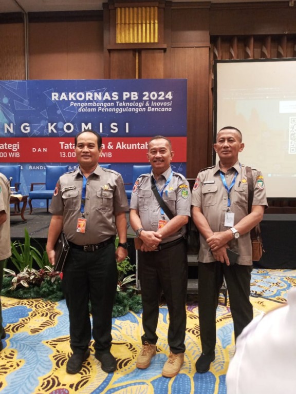 Bandung - Plt. Kepala Pelaksana BPBD Kabupaten Bengkulu Tengah, Gunawan R., S.E., M.M., bersama Pj. Bupati Bengkulu Tengah, Dr. Heriyandi Roni, M.Si., menghadiri Rapat Koordinasi Nasional (Rakornas) Penanggulangan Bencana Badan Nasional Penanggulangan Bencana (BNPB) Tahun 2024 dengan mengusung tema “Pengembangan Teknologi & Inovasi dalam Penanggulangan Bencana” yang berlokasi di Pullman Grand Central Bandung.