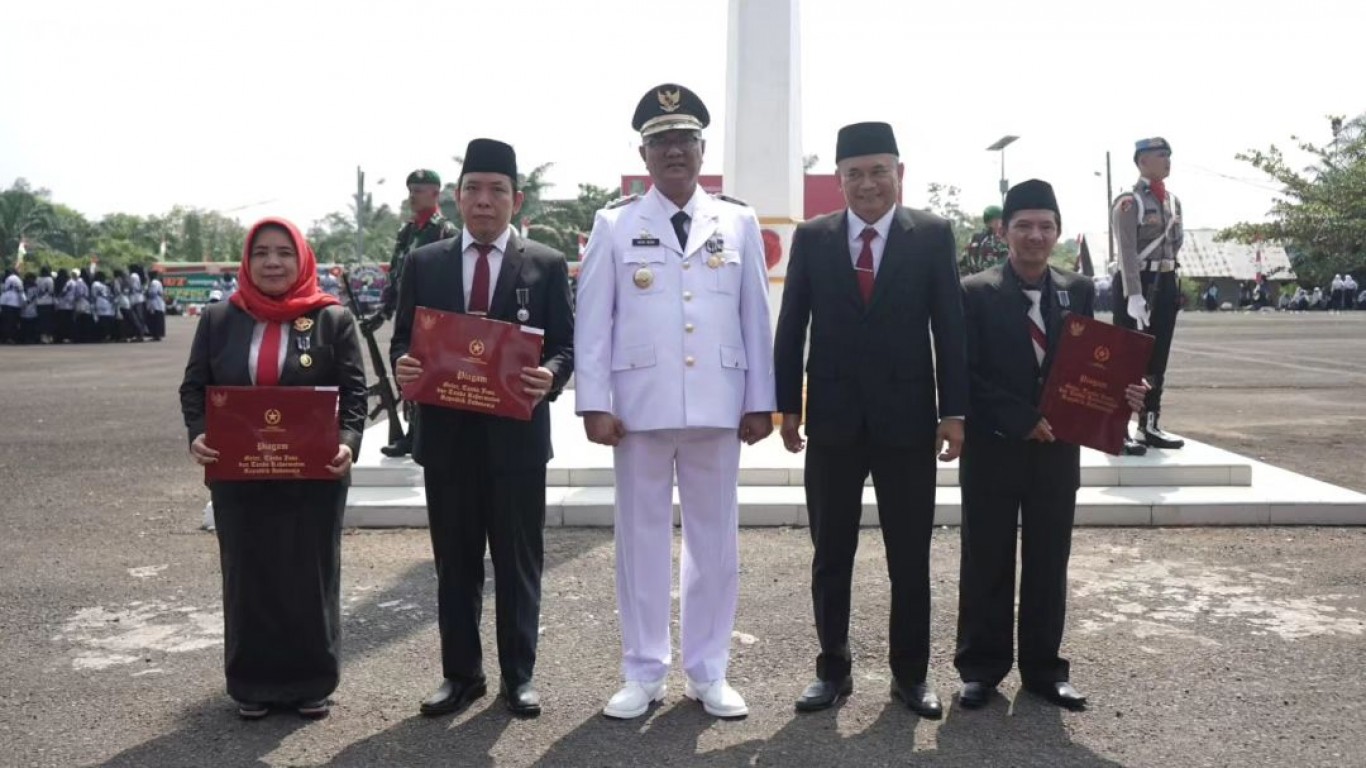 Bengkulu Tengah – BPBD Benteng mengikuti Upacara HUT Ke-79 Republik Indonesia baik upacara pagi hari dalam detik-detik proklamasi dan pengibaran bendera sang merah putih, selanjutnya upacara sore hari dalam penurunan bendera merah putih yang diadakan di Lapangan Gunung Bungkuk Kantor Bupati Bengkulu Tengah pada Sabtu (17/08/2024). Upacara ini dihadiri Pj. Bupati Bengkulu Tengah, Sekda Bengkulu Tengah, Unsur Forkopimda, Pj. Ketua PKK, Ketua DWP, Kepala Instansi Vertikal, Para Asisten, Staf Ahli, Kepala OPD, Camat, dan Kepala Bagian di lingkup Pemerintah Kabupaten Bengkulu Tengah. Setelah upacara pengibaran bendera di pagi hari, dalam rangkaian HUT ke 79 RI dilanjutkan pemberian Satya Lencana kepada 104 orang ASN yang telah mengabdikan diri sebagai ASN selama 10 tahun, 20 tahun dan 30 tahun di di lingkup Pemerintah Kabupaten Bengkulu Tengah.
