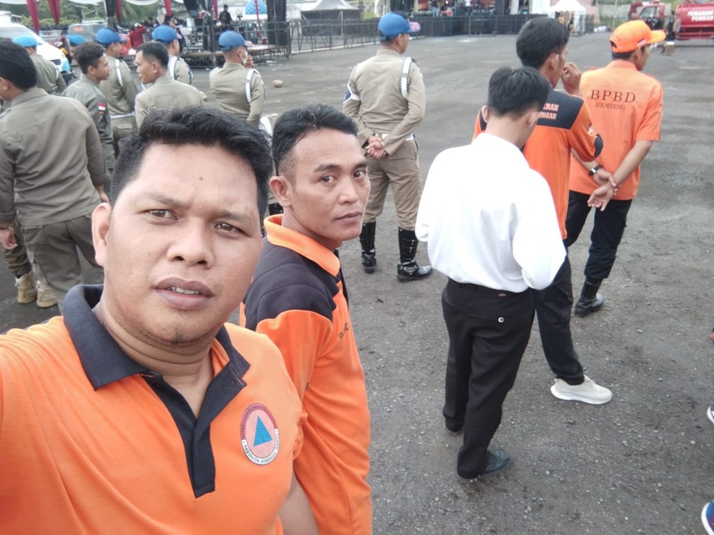 Bengkulu Tengah – BPBD dukung persiapan dalam pelaksanaan Launching Maskot Pilkada Bengkulu Tengah pada Senin malam (10/6/2024) bertempat di Lapangan Gunung Bungkuk Bengkulu Tengah. Persiapan satgas dilakukan dari sore hari bersama tim lain dari OPD terkait hingga acara di malam harinya dalam kesiapsiaagan kelancaran acara. Kegiatan ini diselenggarakan oleh Komisi Pemilihan Umum (KPU) Kabupaten Bengkulu Tengah yang dihadiri Bupati Bengkulu Tengah Dr. Heriyandi Roni, M.Si., di dampingi Sekretaris Daerah Drs. Rachmat Riyanto,.S.T., M.AP., sekaligus ikut meluncurkan maskot pemilihan Bupati dan Wakil Bupati Kabupaten Bengkulu Tengah Tahun 2024. Turut hadir Ketua KPU Provinsi Bengkulu, Jajaran Forkopimda Bengkulu Tengah, Ketua Bawaslu Bengkulu Tengah, Ketua atau perwakilan KPU/Bawaslu se-Provinsi Bengkulu, beberapa Kepala OPD serta tamu undangan lainnya. Adapun maskot yang dipilih yaitu bernama Mideswa artinya Memilih Dengan Rasa Tanggung Jawab, berupa bentuk hewan singa yang menggunakan detar di kepala serta bentuk pakaian seperti baju adat bagi laki-laki di Bengkulu. Adapun untuk memeriahkan acara ini menghadirkan Band Nasional Republik, sanggar seni Jenang Budaya dan juga penyanyi Dangdut Daerah Rathy.