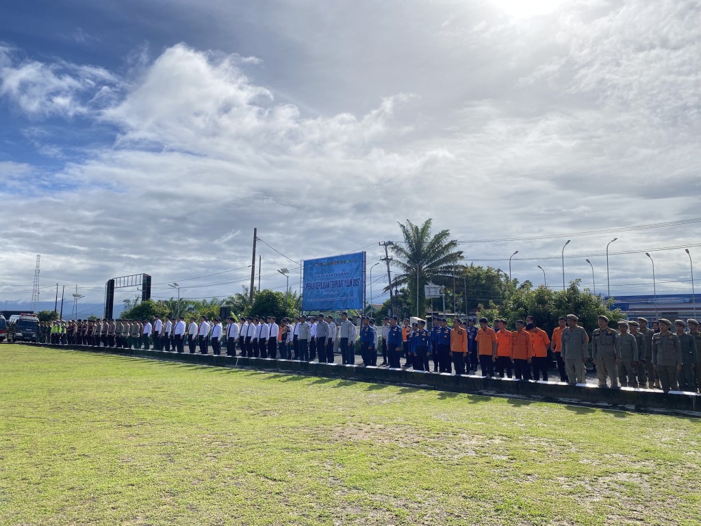 Bengkulu Tengah – BPBD Kab. Bengkulu Tengah turut menghadiri Apel Gelar Pasukan Operasi Kepolisian Terpusat Lilin Nala Tahun 2025 dalam rangka pengamanan natal 2025 dan tahun baru 2026 yang diselenggarakan oleh Polres Bengkulu Tengah di Halaman Apel Mako Polres Bengkulu Tengah, Jumat (19/12/2025). Apel tersebut dipimpin langsung Kapolres Bengkulu Tengah dan dihadiri Asisten Administrasi Pemerintahan dan Kesra Nurul Iwan Setiawan, S.Sos., M.Si., Perwakilan Kejari Bengkulu Tengah, Kepala OPD serta undangan lainnya. Apel gelar pasukan ini merupakan bentuk pengecekan kesiapan personil, kendaraan operasi dan peralatan lainnya oleh Kapolres Bengkulu Tengah AKBP Totok Handoyo, S.I.K. Kegiatan pengamanan natal dan tahun baru menjadi kegiatan rutin yang dilaksanakan setiap tahun, pada tahun ini Operasi Lilin Nala Tahun 2025 berlangsung selama 14 hari dengan melibatkan pasukan gabungan dari Polri, TNI, BPBD, Dishub, Satpol PP, Damkar, dan Dinkes.