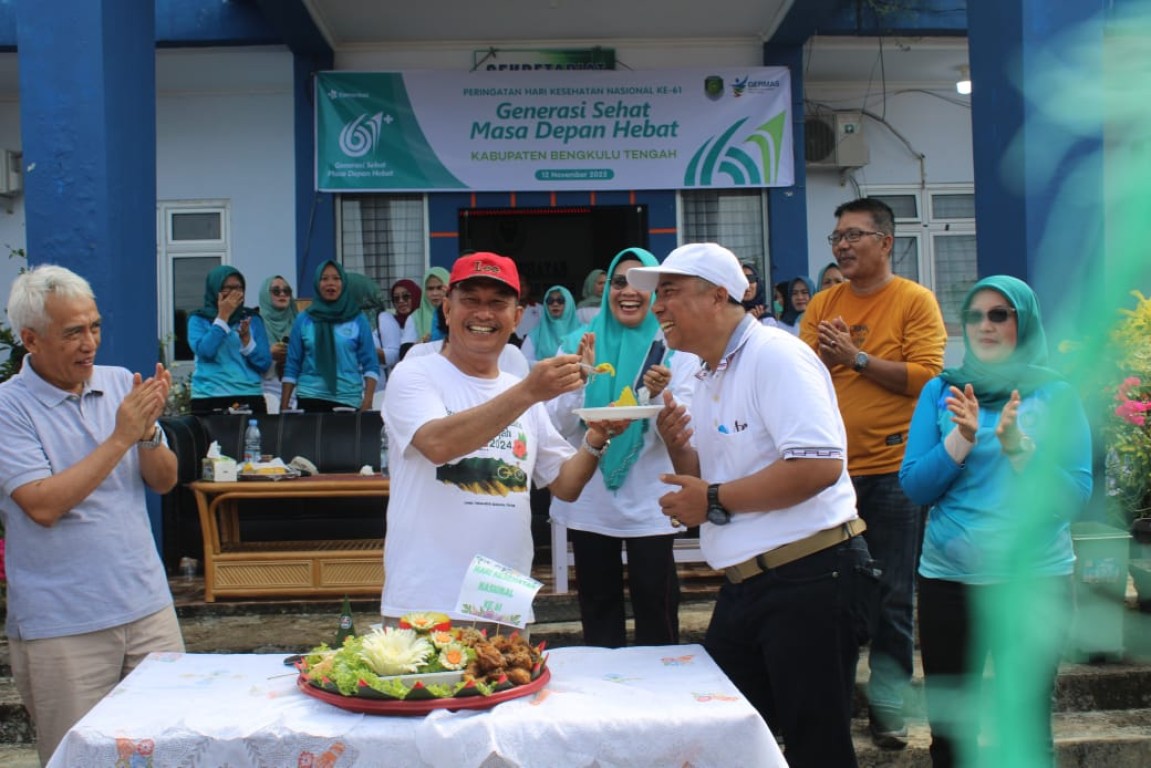 Bengkulu Tengah – BPBD Kab. Bengkulu Tengah mengikuti acara peringatan Hari Kesehatan Nasional Ke-61 yang diselenggarakan Dinas Kesehatan Kab. Bengkulu Tengah dengan melaksanakan kegiatan jalan santai yang bertabur doorprise, pengukuran massa tubuh (MT), cek kesehatan gratis (CKG) dan skrining TBC. Selain itu, dilaksanakan juga syukuran dengan melakukan pemotongan tumpeng oleh Staf Ahli Bupati Bengkulu Tengah, Gunawan R., S.E., M.M. Acara ini dilaksanakan pada Jumat (14/11/2025) di Kantor Dinas Kesehatan Kab. Bengkulu Tengah, Pusat Perkantoran Renah Semanek. Acara ini dihadiri Kepala Dinas Kesehatan, Direktur RSUD, Kepala OPD, Kepala Puskesmas dan ASN di Lingkup Kab. Bengkulu Tengah.