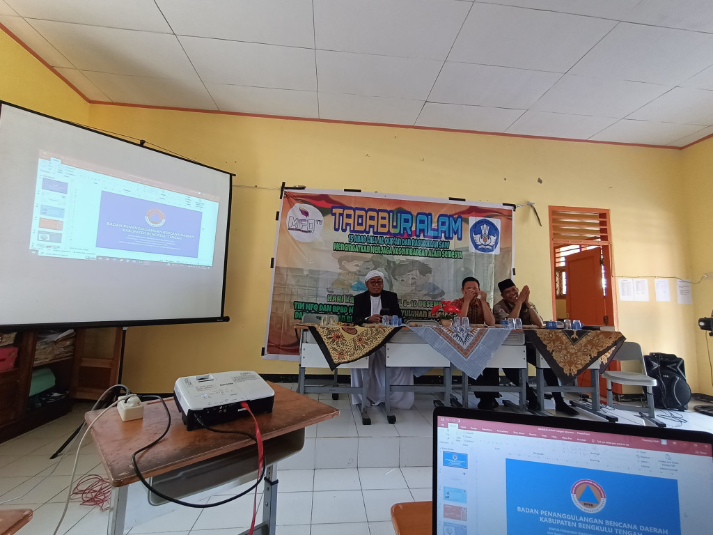 Bengkulu Tengah - BPBD menghadiri sebagai Narasumber mengenai Mitigasi Bencana dalam kegiatan Tadabur Alam oleh Yayasan Cahaya Bakti Negeri (YCBN) dan Komunitas Karya Nyata Sosial (KBN) dalam rangka Dialog Keseimbangan Alam dan Penanaman Pohon Bagi Siswa/Siswi di SMAN 6 Bengkulu Tengah dan MA Muslim Cendikia Bengkulu Tengah. Kegiatan ini dihadiri Kepala Pelaksana BPBD Bengkulu Tengah, YCBN dihadiri oleh Ustad. Fauzan Tohir, S.sos.I, M.Ag., KBN dihadiri oleh Ketua Panitia Risyanto dan masing-masing kepala sekolah. Setelah dialog sosialisasi peduli lingkungan dilanjutkan kegiatan penanaman pohon berupa bantuan bibit di masing-masing sekolah.