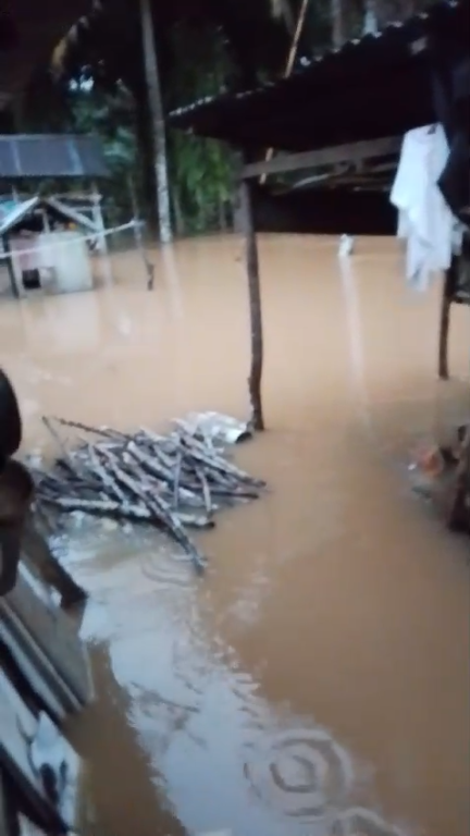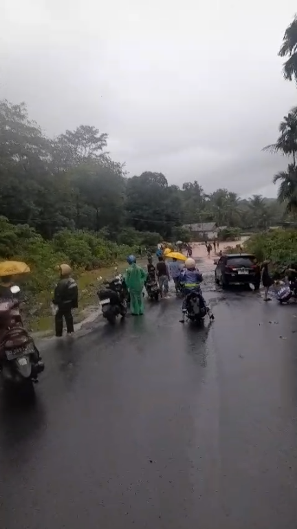 Bengkulu Tengah – Hujan dengan durasi lama dan intensitas hujan yang tinggi pada Senin (18/11/2024) siang hari, menyebabkan kejadian banjir sehingga gorong-gorong Sungai Bengkulu tersumbat, berdampak akses jalan rute Taba Lagan menuju Pagar Gunung sulit dilewati, terhambat di Desa Lagan Bungin, Kecamatan Semidang Lagan. Gorong-gorong yang tersumbat menyebabkan air sungai naik menggenang dan berarus cukup deras mencapai ke jalan raya, sehingga pengendara bermotor kesulitan melintas karena kuatnya arus air. Setelah mendapat informasi kejadian, BPBD Kab. Bengkulu Tengah segera menurunkan tim satgas menuju lokasi kejadian untuk melaporkan kondisi terkini dan penanganan evakuasi di lokasi kejadian banjir.