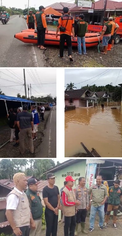 Bengkulu Tengah – Hujan dengan durasi lama hingga 24 jam lebih dan curah hujan sedang hingga tinggi disertai angin kencang yang mengguyur wilayah Kabupaten Bengkulu Tengah sejak Jumat (02/01/2026) hingga Sabtu (03/01/2026). Hal ini menyebabkan kejadian banjir dari luapan air sungai yang menggenangi pemukiman warga Desa Taba Terunjam Kecamatan Karang Tinggi terdampak 51 KK; Desa Talang Empat Kecamatan Karang Tinggi terdampak 74 KK; Desa Taba Jambu Dusun 3 Kecamatan Pondok Kubang terdampak 5 KK; dan lahan persawahan yang terdampak di Desa Srikuncoro Kecamatan Pondok Kelapa seluas 75 Hektar dan Desa Taba Terunjam Kecamatan Karang Tinggi seluas 5 Hektar. Setelah mendapat informasi kejadian, BPBD Kabupaten Bengkulu Tengah segera menurunkan tim satgas yang dipimpin Sekretaris, Rachmad Hidayat, S.E. dan Kabid Kedaruratan dan Logistik, Andri Edo Saputra, S.Sos., menuju lokasi kejadian untuk melaporkan kondisi terkini dan penanganan evakuasi korban dan barang - barang milik warga terdampak di lokasi kejadian banjir. Selain itu, disediakan 2 unit perahu, 2 unit mobil, 2 unit tenda di lokasi terdampak dan telah berkoordinasi ke BPBD Provinsi Bengkulu untuk meminta bantuan. Pada Sabtu (03/01/2026), hadir pula Pj. Sekda, Ayatul Mukhtadin, SH., di dampingi Asisten Bidang Pemerintahan dan Kesra, Nurul Iwan Setiawan, S.Sos, M.Si., meninjau langsung lokasi terdampak.
