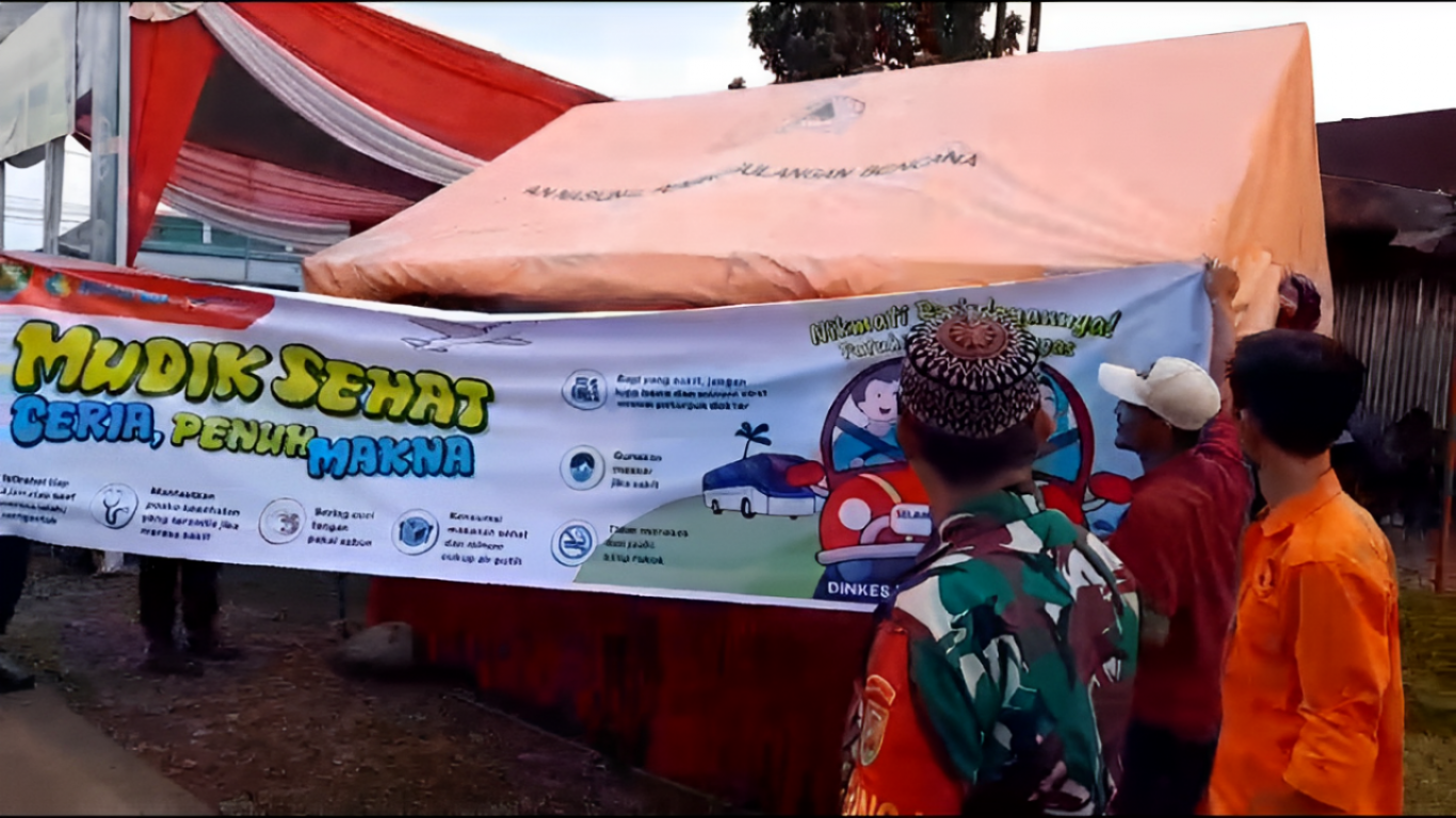 Bengkulu Tengah – Tim Satgas BPBD Kab. Bengkulu Tengah yang bertugas pada Posyan Simpang Pasar Pedati dalam rangka mengamankan arus mudik-balik dan perayaan Hari Raya Idul Fitri 1445 H melakukan pemasangan tenda BPBD untuk tim kesehatan turut. Operasi Ketupat Nala 2024 berlangsung selama 13 hari, mulai dari Kamis (04/04/2024) hingga Senin (16/04/2024), selain Posyan Simpang Pasar Pedati terdapat pula Posyan Liku Sembilan dan Posyan Pintu Tol Taba Penanjung-Bengkulu serta 2 Pospam di titik Kampung Durian dan Wahana Surya. BPBD mengerahkan sejumlah personil dalam Operasi Ketupat Nala 2024 ini yang dibagi kedalam 2 shift dan secara bergilir bertugas di masing-masing posyan dan pospam. Adapun personil yang disiagakan bersifat gabungan dari Polri, TNI, BPBD, Dishub, Satpol PP, Damkar, dan Dinkes.