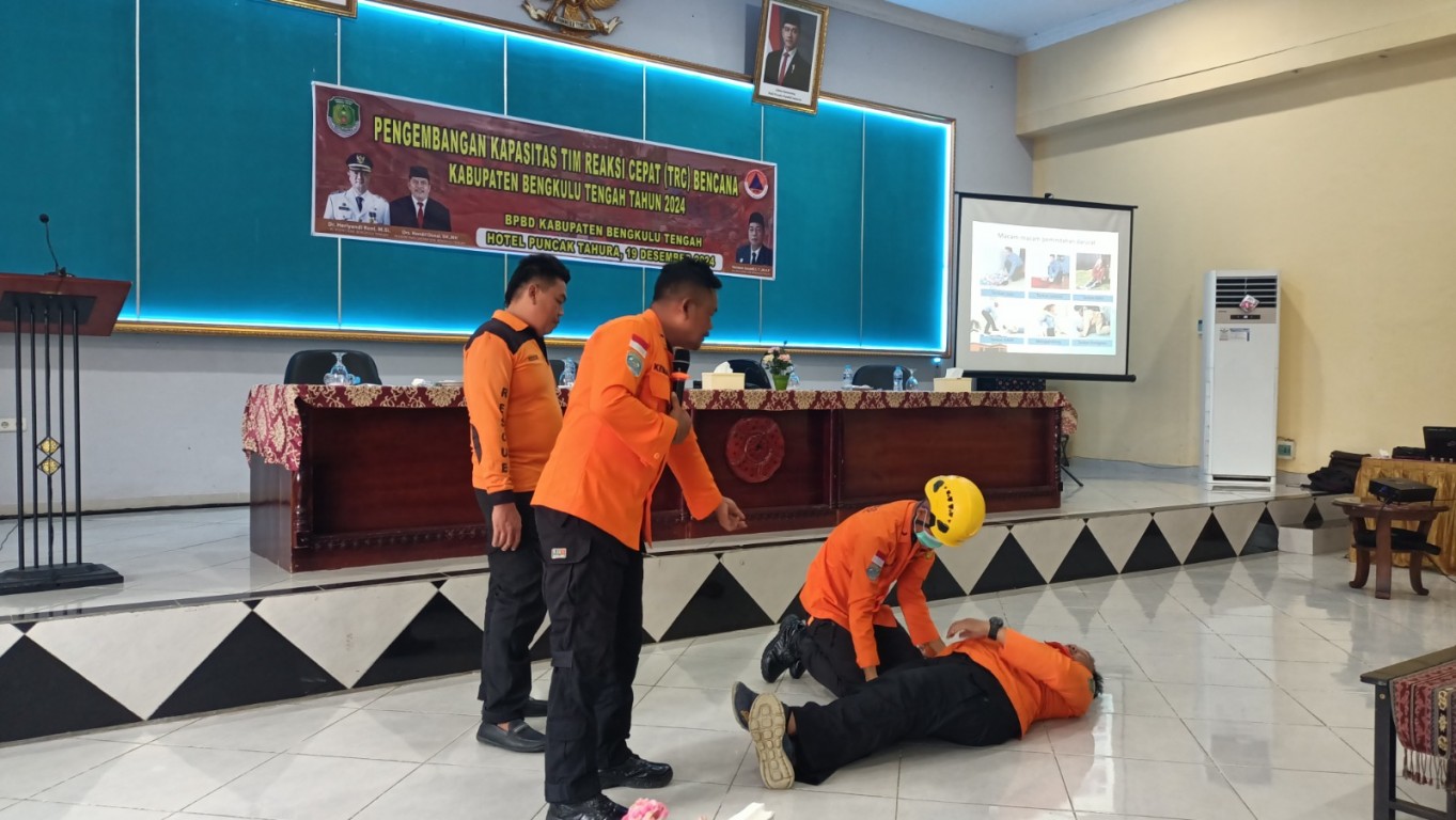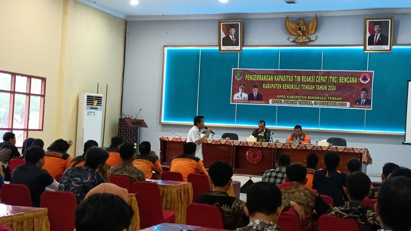 Bengkulu Tengah – BPBD Kabupaten Bengkulu Tengah menyelenggarakan Pelatihan Pencegahan dan Mitigasi Bencana yang dilaksanakan di Hotel Puncak Tahura, Desa Tanjung Terdana, Kecamatan Pondok Kubang pada Kamis (19/12/2024). Acara dihadiri Anggota TRC Desa dari setiap Kecamatan di Kabupaten Bengkulu Tengah, Anggota TRC dan ASN BPBD Kabupaten Bengkulu Tengah. Adapun pemateri kegiatan dari BPBD Provinsi Bengkulu, Basarnas Bengkulu, PMI Provinsi Bengkulu, MDMC Bengkulu dan BPBD Kabupaten Bengkulu Tengah.