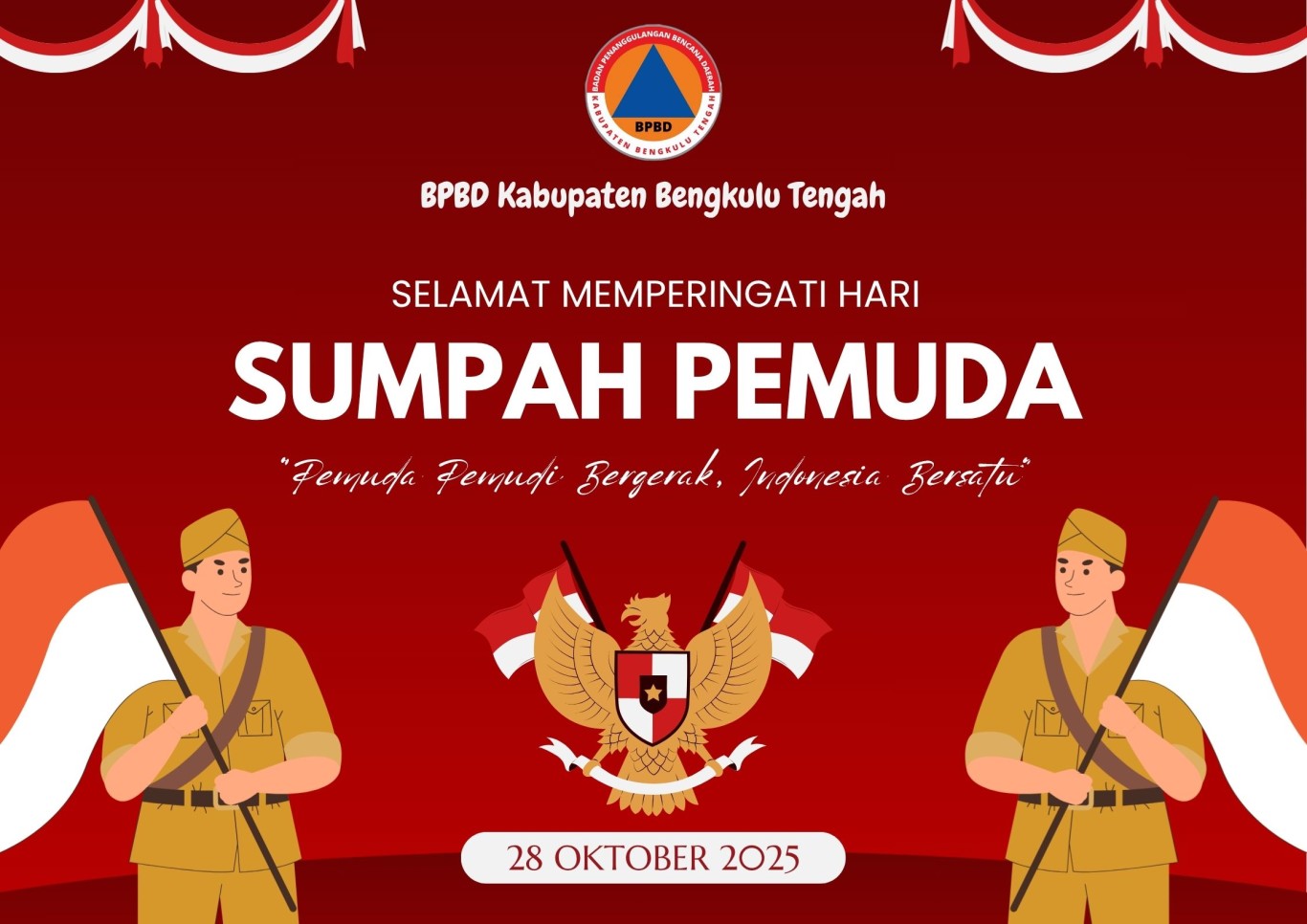 Bengkulu Tengah – Perwakilan BPBD Kabupaten Bengkulu Tengah menghadiri Upacara Peringatan Hari Sumpah Pemuda Ke-97 Tahun 2025 dengan tema “Pemuda Pemudi Bergerak, Indonesia Bersatu” di Halaman Kantor Bupati Bengkulu Tengah pada Selasa (28/10/2025). Pada upacara ini Kapolres Bengkulu Tengah AKBP Totok Handoyo , S.IK., bertindak menjadi inspektur upacara, dengan dihadiri unsur Forkopimda Bengkulu Tengah, Ketua TP PKK, Pj. Ketua DWP, Para Asisten, Staf Ahli, para kepala OPD, TNI-Polri, ASN, organisasi kepemudaan dan pelajar serta undangan lainnya.