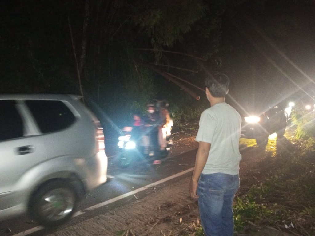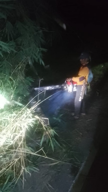 Bengkulu Tengah – Terdapat 1 titik lokasi kejadian pohon tumbang akibat hujan lebat dan disertai angin kencang yang terjadi di Jalan Nasional Kawasan Liku Sembilan KM 35 (Jalan Lintas Kota Bengkulu – Kabupaten Kepahiang), Kecamatan Taba Penanjung, Kabupaten Bengkulu Tengah pada Rabu (18/12/2024) malam hari. Pohon bambu yang tumbang menghalangi badan jalan dan membuat arus lalu lintas terganggu. Setelah mendapat informasi kejadian, BPBD Kab. Bengkulu Tengah menurunkan tim satgas menuju lokasi kejadian untuk segera dilakukan penanganan berupa pemotongan pohon menggunakan chainsaw serta pembersihan material sisa pohon tumbang. Penanganan evakuasi pohon tumbang yang saat ini sudah selesai dan arus lalulintas berjalan normal kembali dan nihil korban jiwa.
