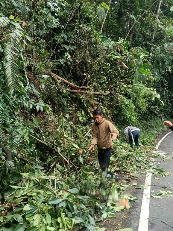 Bengkulu Tengah – Terdapat 1 titik lokasi kejadian pohon tumbang akibat hujan lebat dan disertai angin kencang yang terjadi di Jalan Nasional Kawasan Liku Sembilan KM 47 (Jalan Lintas Kota Bengkulu – Kabupaten Kepahiang), Kecamatan Taba Penanjung, Kabupaten Bengkulu Tengah pada Kamis (06/11/2025) sekitar pukul 07.00 WIB. Pohon yang tumbang menghalangi setengah badan jalan dan membuat arus lalu lintas terganggu. Setelah mendapat informasi kejadian, BPBD Kab. Bengkulu Tengah menurunkan tim satgas menuju lokasi kejadian untuk segera dilakukan penanganan berupa pemotongan pohon menggunakan chainsaw serta pembersihan material sisa pohon tumbang bersama Polri dan BPJN. Penanganan evakuasi pohon tumbang yang saat ini sudah selesai dan arus lalulintas berjalan normal kembali dan nihil korban jiwa.