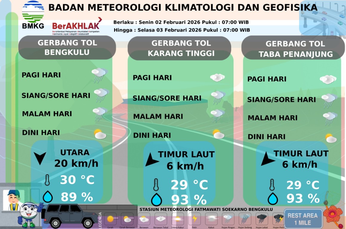 PRAKIRAAN CUACA JALUR TOL BENGKULU-TABA PENANJUNG