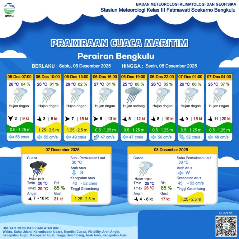 erikut prakiraan cuaca hari Sabtu, 06 Desember 2025.