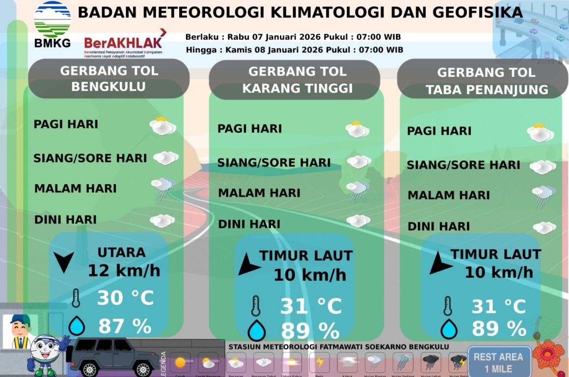 PRAKIRAAN CUACA JALUR TOL BENGKULU-TABA PENANJUNG