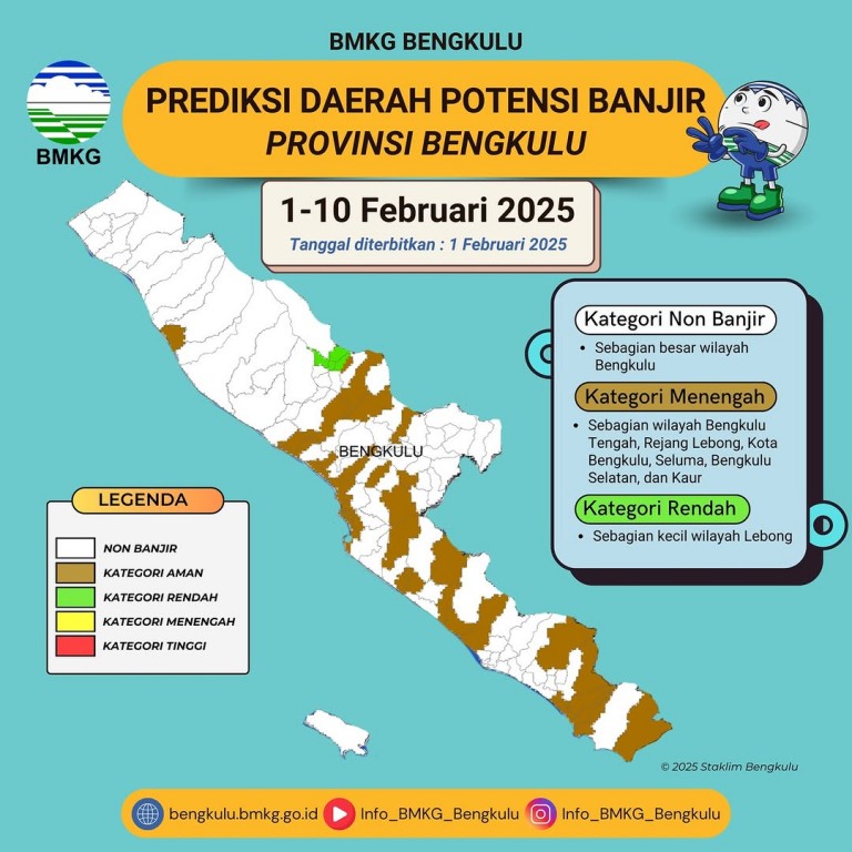 Prediksi Daerah Potensi Banjir Provinsi Bengkulu (1-10 Februari 2025)