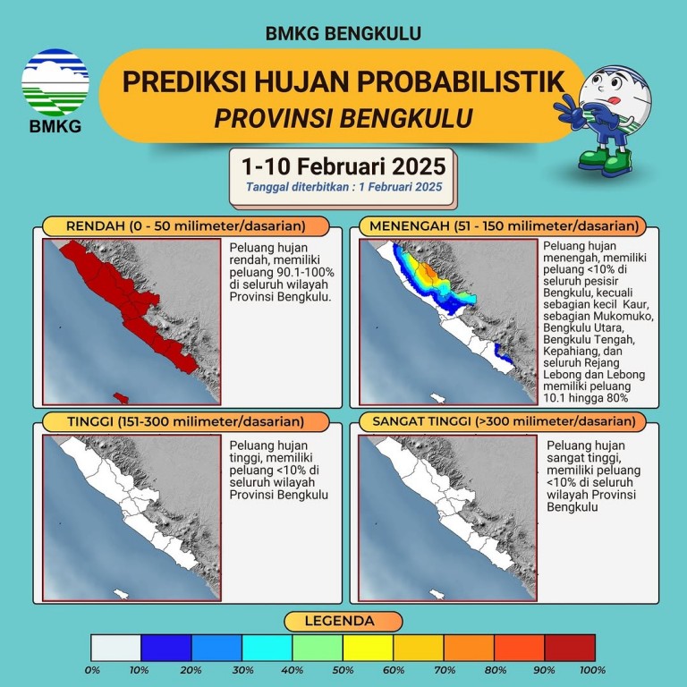 Prediksi Hujan Probabilistik Provinsi Bengkulu (1-10 Februari 2025)