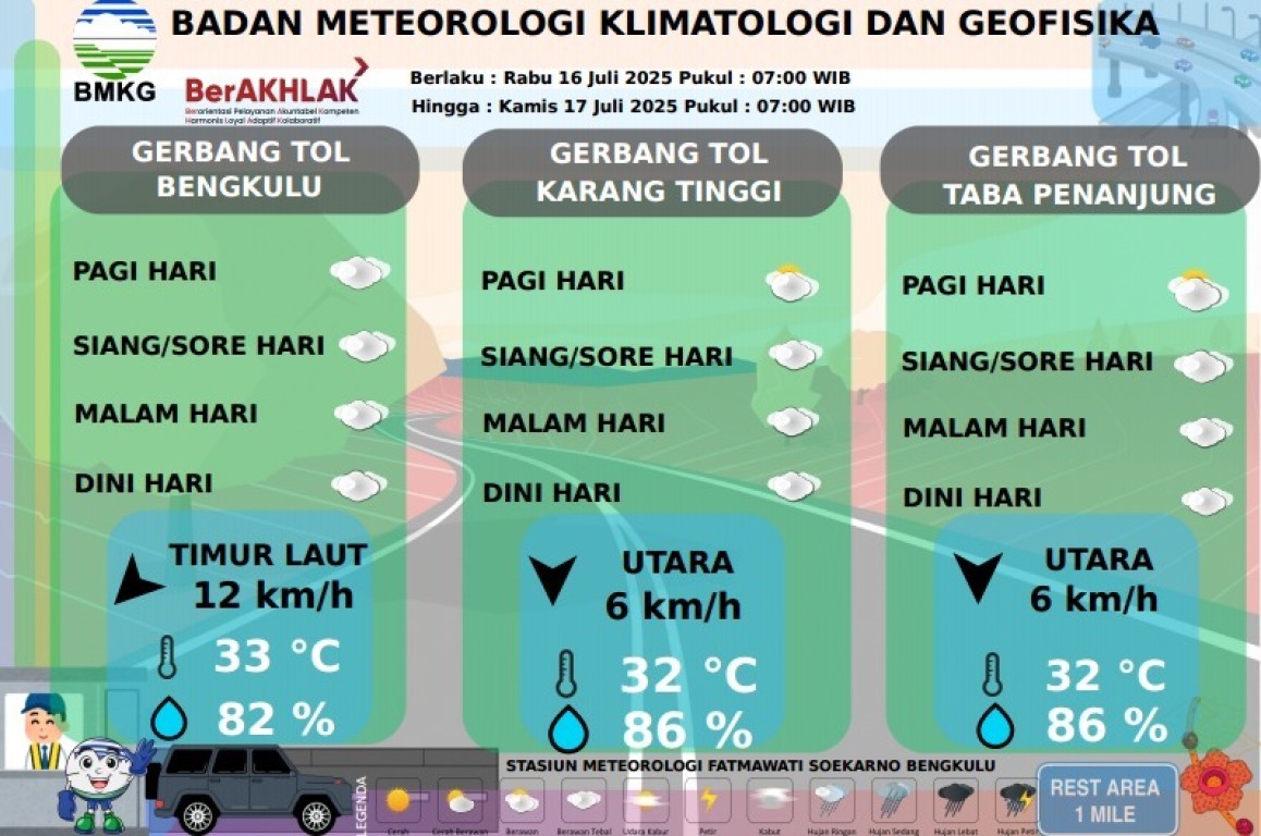 PRAKIRAAN CUACA JALUR TOL BENGKULU-TABA PENANJUNG