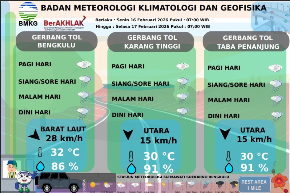PRAKIRAAN CUACA JALUR TOL BENGKULU-TABA PENANJUNG