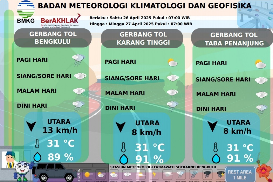 PRAKIRAAN CUACA JALUR TOL BENGKULU-TABA PENANJUNG