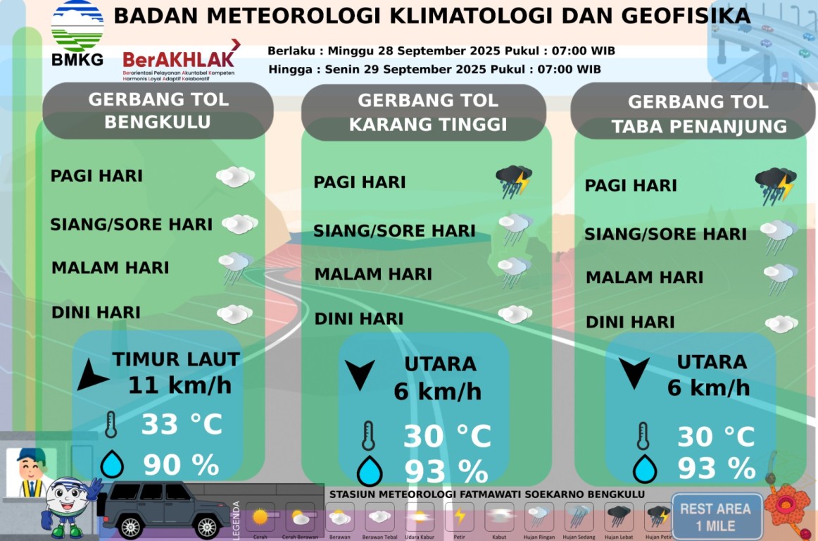 PRAKIRAAN CUACA JALUR TOL BENGKULU-TABA PENANJUNG