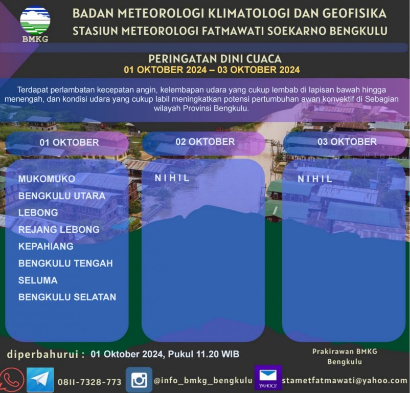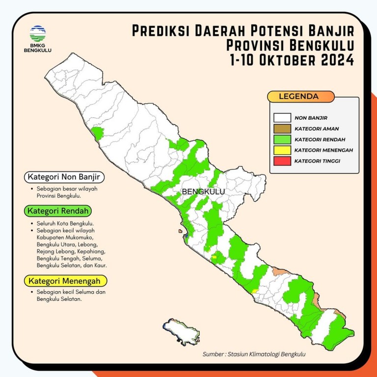 Prediksi Daerah Potensi Banjir Provinsi Bengkulu (01 - 10 Oktober 2024)