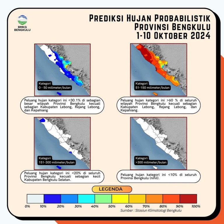 Prediksi Hujan Probabilistik Provinsi Bengkulu (01 - 10 Oktober 2024)