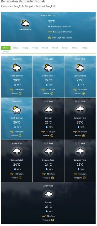 Berikut prakiraan cuaca per kecamatan untuk hari Rabu, 04 September 2024.