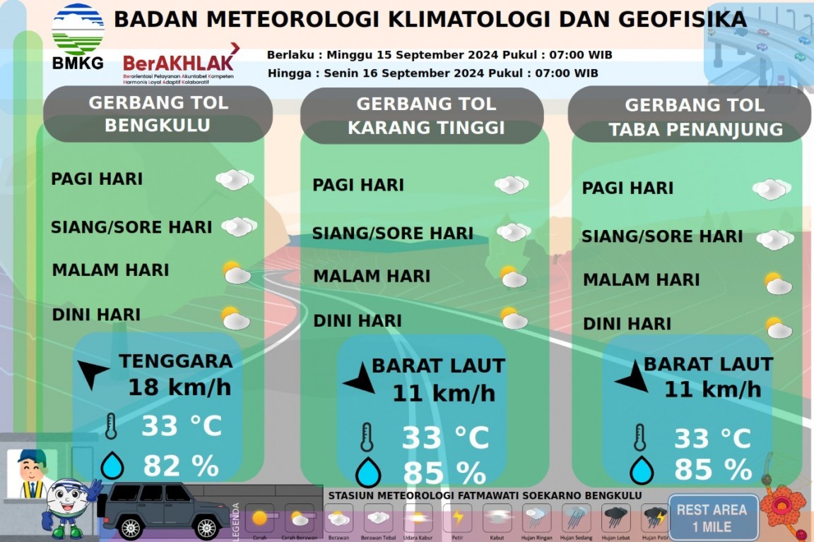 PRAKIRAAN CUACA JALUR TOL BENGKULU-TABA PENANJUNG