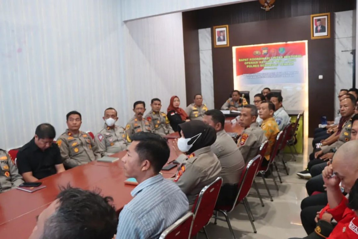 Bengkulu Tengah – Perwakilan BPBD Kab. Bengkulu Tengah menghadiri Rapat Koordinasi (Rakor) Lintas Sektoral Operasi Ketupat Nala 2024 Polres Bengkulu Tengah dalam rangka pengamanan Hari Raya Idul Fitri 1445 di Kabupaten Bengkulu Tengah yang diadakan di Polres Bengkulu Tengah Kamis (28/03/2024). Pada kegiatan ini juga berlangsung secara daring Rapat Koordinasi (Rakor) Lintas Sektoral dalam rangka kesiapan pengamanan Hari Raya Idul Fitri 1445 di Provinsi Bengkulu, dimana rapat ini dipimpin oleh Wakapolda Bengkulu Brigjen Pol Drs. Agus Salim dan dihadiri oleh berbagai pihak terkait dari kota/kabupaten di Bengkulu. Tujuan rakor ini untuk memastikan kesiapan satuan pengamanan dan para pemangku kepentingan dalam menghadapi dinamika kamtibmas menjelang saat dan pasca perayaan Idul Fitri 1445 H Tahun 2024 dan diharapkan dapat meningkatkan sinergitas antara berbagai pihak terkait. Pengamanan Hari Raya Idul Fitri 1445 tidak hanya melibatkan Polri namun juga didukung oleh TNI, Pemda, instansi terkait lainnya, serta mitra kamtibmas selama 13 hari, dimulai dari tanggal 04 - 16 April 2024.