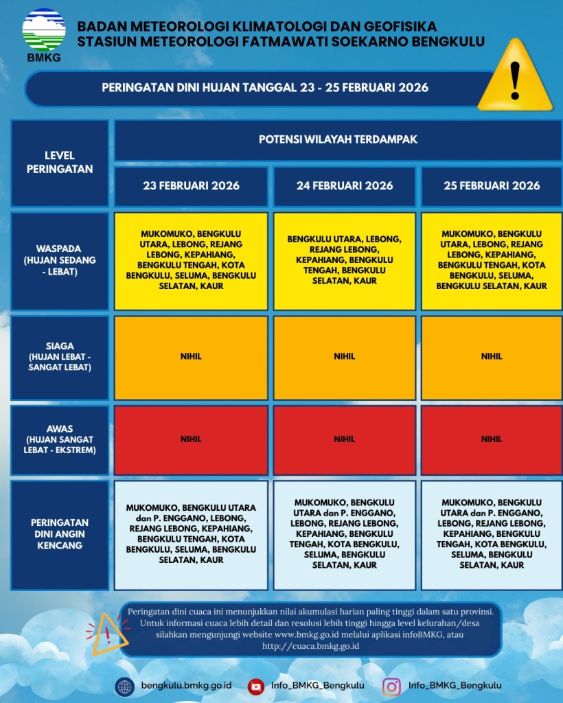 Prakiraan Cuaca Wilayah Kab. Bengkulu Tengah 23 Februari 2026