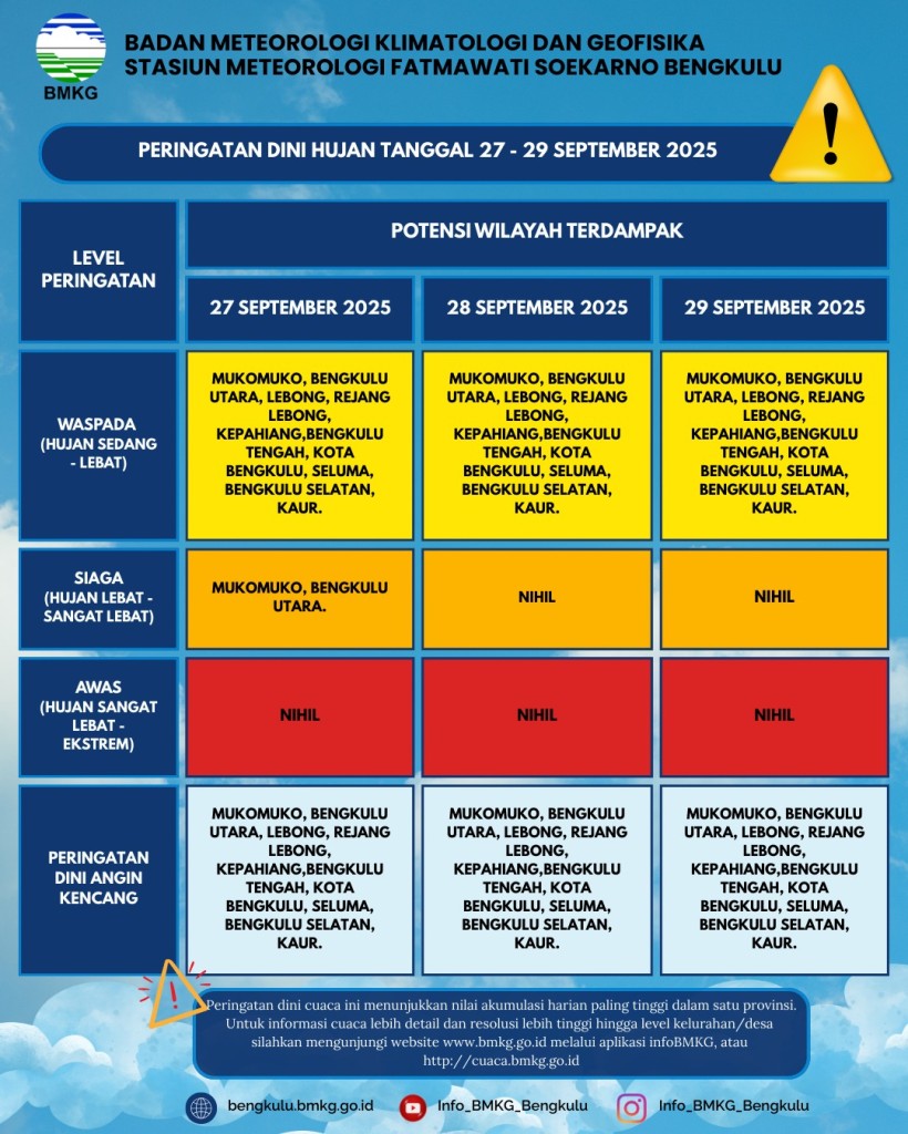 Prakiraan Cuaca Wilayah Kab. Bengkulu Tengah 27 September 2025
