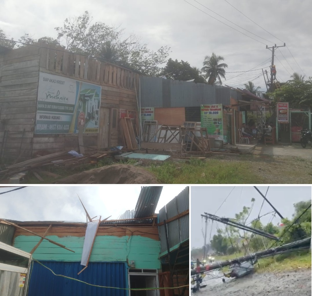 Tiang Listrik Roboh dan Atap Ruko Rusak di Desa Dusun Baru 1, Kecamatan Pondok Kubang