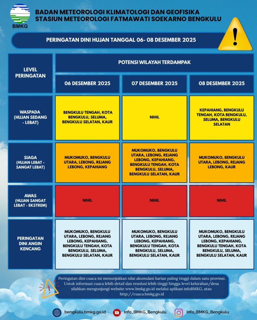 Prakiraan Cuaca Wilayah Kab. Bengkulu Tengah 06 Desember 2025