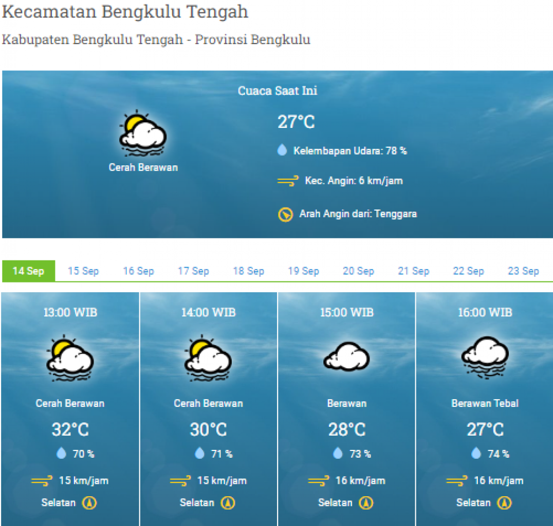 Prakiraan Cuaca Wilayah Kab. Bengkulu Tengah September 2024